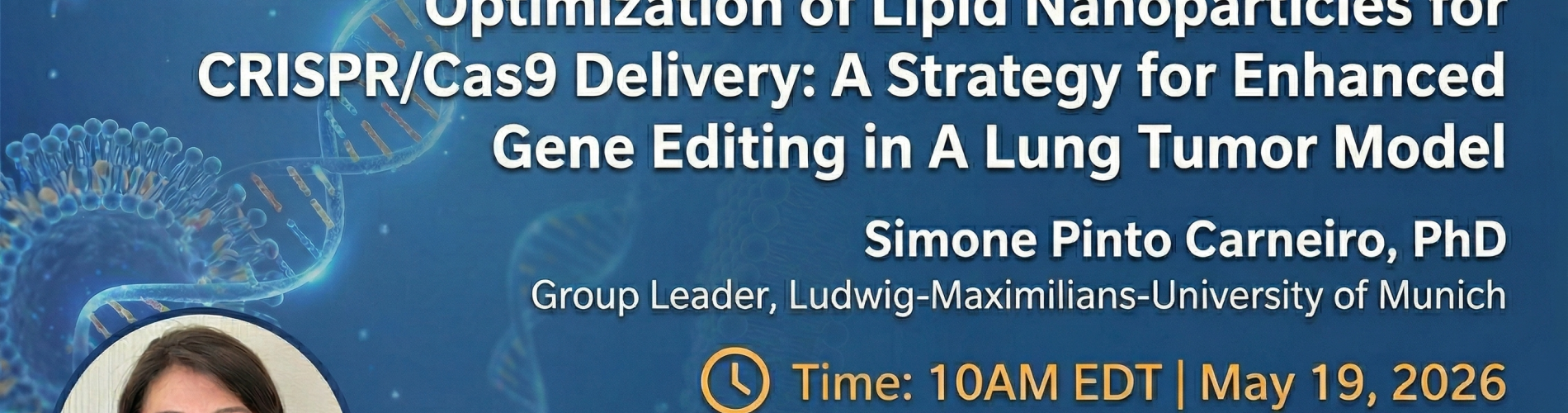 We are honored to host Dr. Simone Pinto Carneiro, a distinguished pharmacist and Group Leader at LMU Munich. With over a decade of expertise in RNA-lipid nanoparticle engineering, Dr. Carneiro has been at the forefront of developing non-viral delivery strategies for pulmonary diseases. In this session, she will share her team's pioneering research on optimizing LNPs to specifically target KRAS mutations in lung cancer models, offering a rare look at the data driving the next generation of gene therapies.
